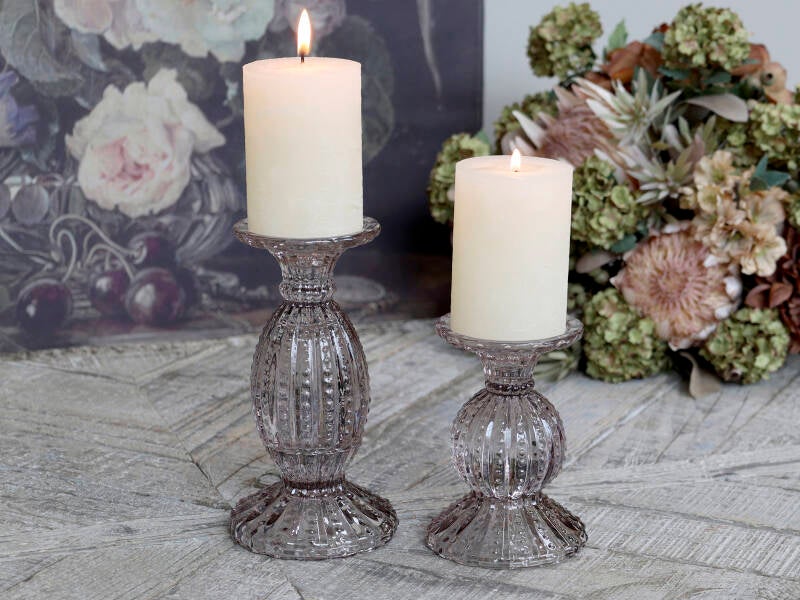 Lysestage sæt m. perlekant Taupe favet glas
