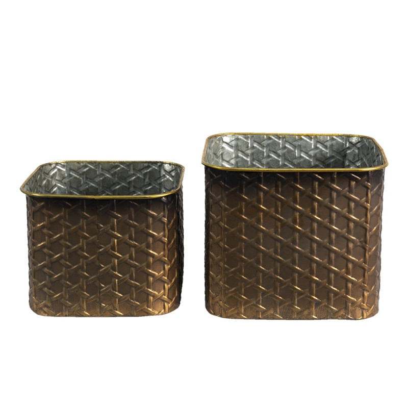 Størrelse:(2) 20x20x17 / 18x18x14 cm, Kobber farvet jern.