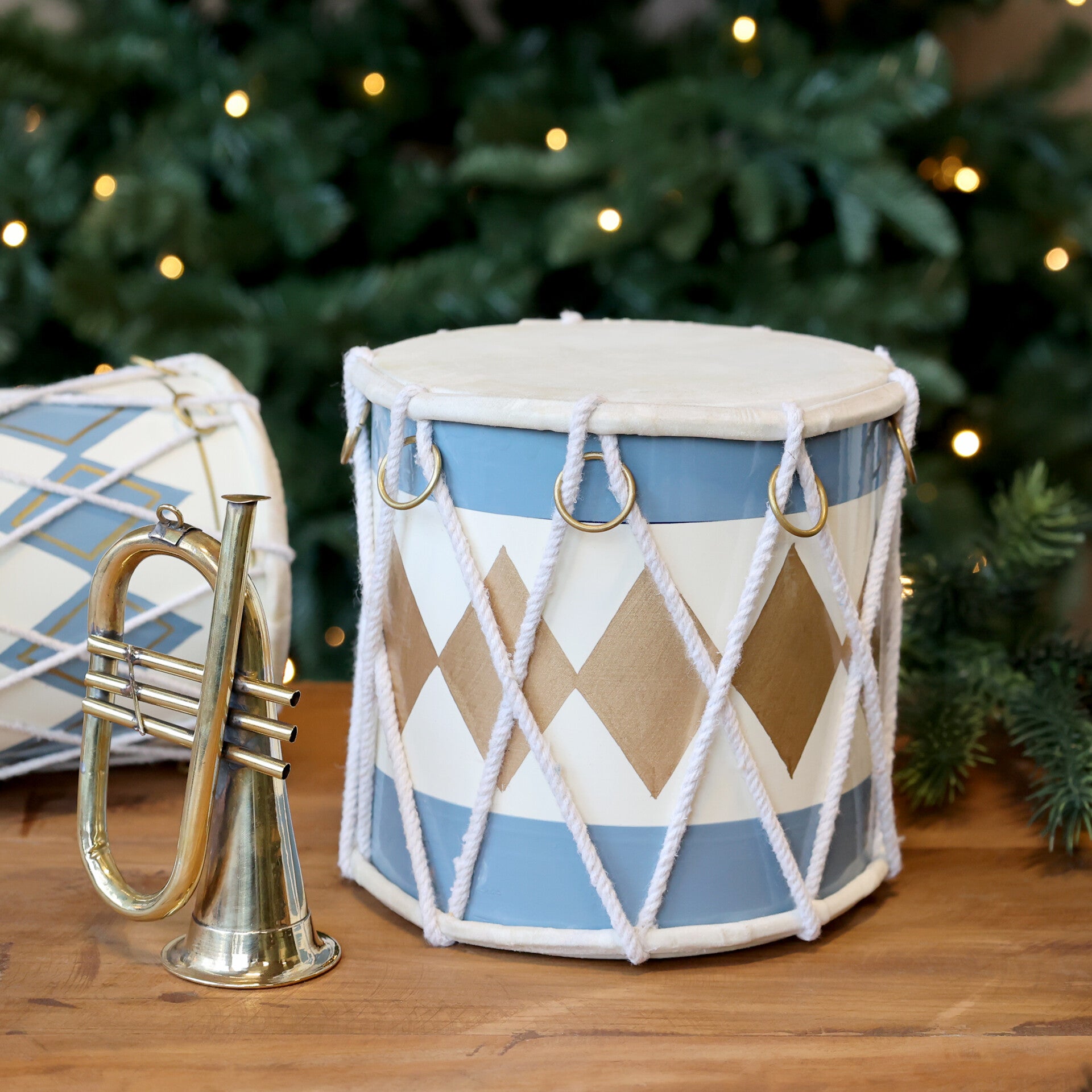 Vintage Tromme m. læder håndlavet H16/Ø16 cm sky blue