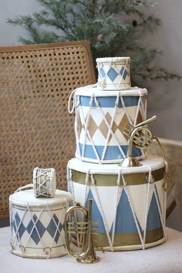 Vintage Tromme m. læder håndlavet H18/Ø20 cm sky blue